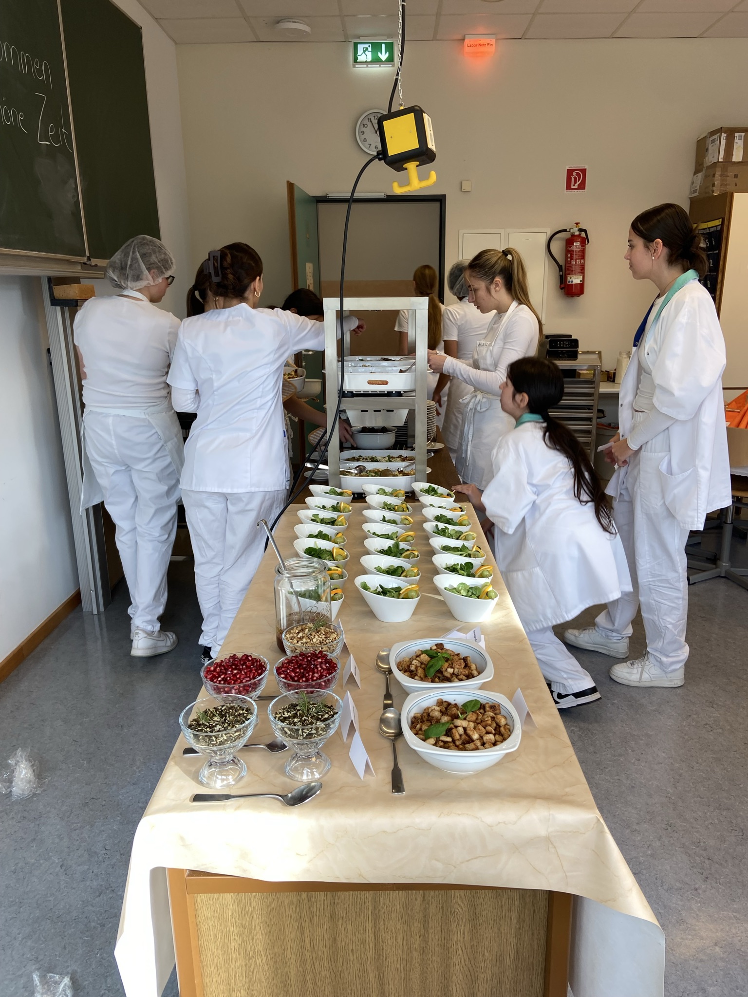 Im Rahmen des Fachbezogenen Unterrichts realisierten Schülerinnen und Schüler der Klasse HBF Ernährung und Versorgung 24 ein besonderes Projekt unter dem Titel „Lehrermittagessen“. Bereits im Vorfeld wurde ein komplettes Herbstmenü geplant, am 20.11.2025 zubereitet und stilvoll präsentiert – mit dem Fokus auf Saisonqualität, Vielfalt und professioneller Menüführung.