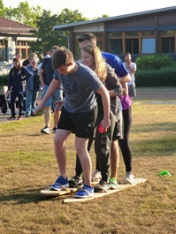 Die Teamfähigkeit untereinander wurde besonders mit der Klassenaufgabe „Hula Hoop Kette“ gefördert. Hand in Hand und so schnell wie möglich mussten sich Schülerinnen und Schüler einer Klasse durch den Hula Hoop Reifen fortbewegen.