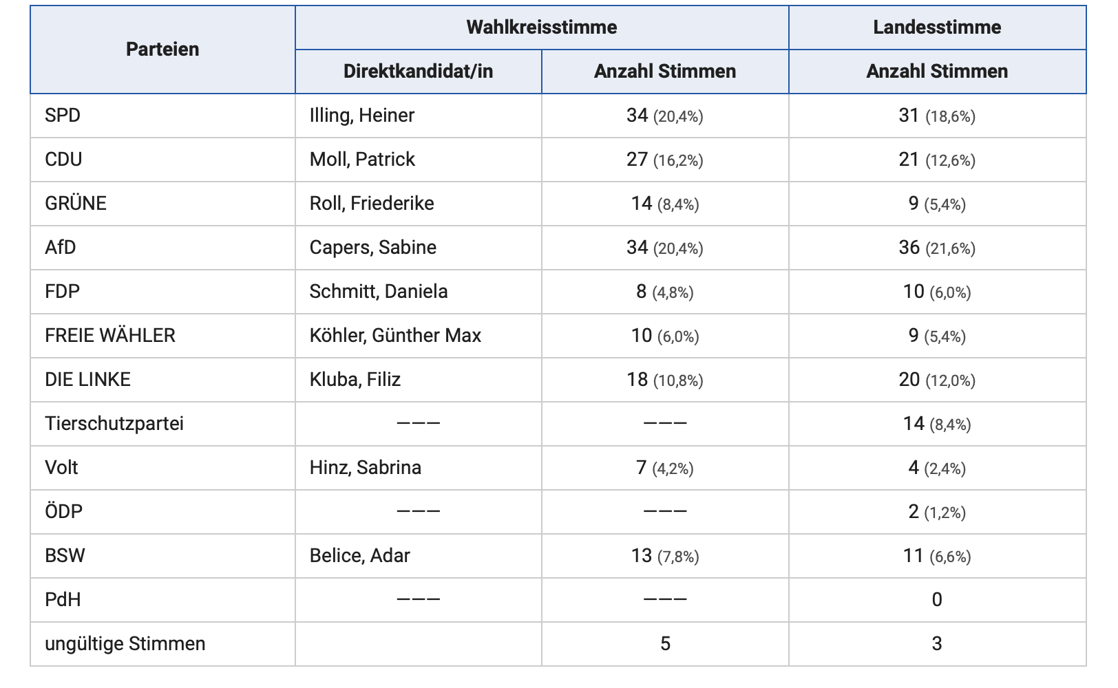 Stimmenübersicht der Wahl an der BBS Alzey